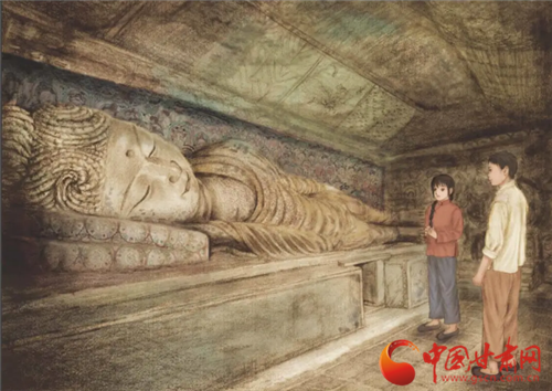 蘭州市民張女士忠愛敦煌藝術(shù),家里收藏了很多關(guān)于敦煌的書籍、文創(chuàng)產(chǎn)品。每次逛書店,看到與敦煌相關(guān)的圖書,她都要仔細(xì)翻閱??吹健锻坎级鼗汀烦霭妫匾鉃榕畠嘿I了一本。“這本書的故事性很強(qiáng),代入感也比較強(qiáng),對(duì)青少年來(lái)說(shuō),是本很不錯(cuò)的課外讀物。既能看到敦煌藝術(shù)、敦煌文化背后的故事,又能從幾個(gè)主人公身上體會(huì)到他們不同的精神內(nèi)涵,特別感染人,很有正能量。”