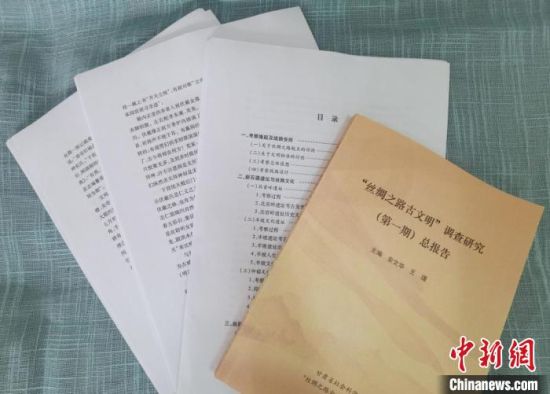 7月下旬,甘肅省社會科學院工作人員展示《絲綢之路古文明》第一階段考察報告打印版?!¢Z姣 攝