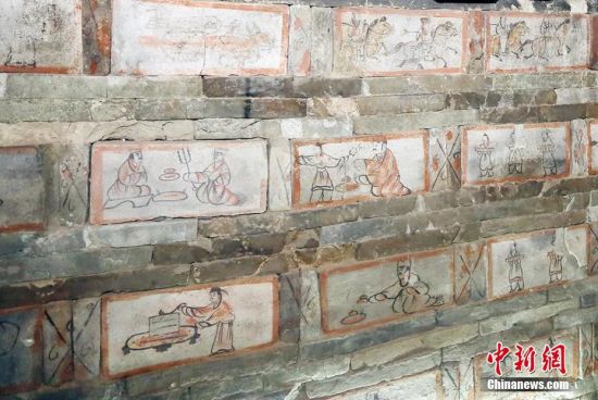 位于甘肅嘉峪關(guān)市的嘉峪關(guān)新城魏晉墓群,內(nèi)有千余座魏晉古墓,從1972年起,先后發(fā)掘18座,其中9座為畫像磚墓。磚壁畫取材于現(xiàn)實生活,用連環(huán)畫的方式反映出了當時河西地區(qū)生活、生產(chǎn)、軍事、文化的真實情景,具有濃厚的生活氣息。目前只開放的六號墓,其壁畫內(nèi)容豐富,具有很強的代表性。高展 攝