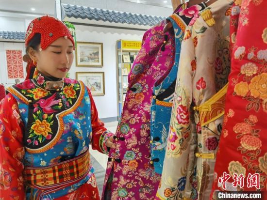 10月中旬,甘肅省甘南藏族自治州手藝人在甘肅省婦聯(lián)隴原巧手館展示民族服飾。(資料圖) 徐雪 攝