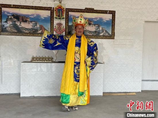 圖為外木村“南木特”藏戲演出隊成員出演智美更登?!∷巫雨俊z