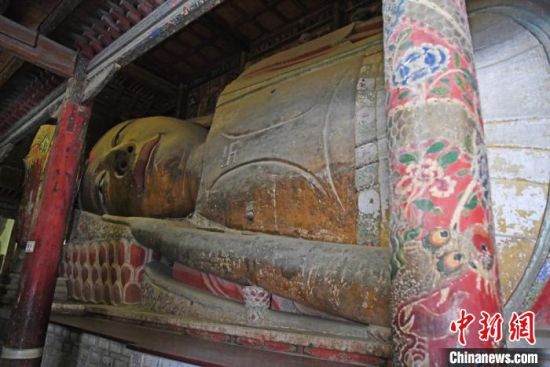 12月中旬,甘肅張掖大佛寺中重要文物的“數字孿生”打造工作已進入新階段。圖為木胎泥塑臥佛。 楊艷敏 攝