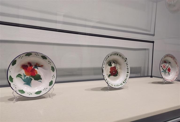 本次展出的156件展品均為蘭州搪瓷廠藝術(shù)底稿和實物,目前由甘肅三木自行車博物館收藏,其中搪瓷手繪設計圖稿65幅,搪瓷器皿91件。展出手繪設計圖稿均為蘭州搪瓷廠王村等人設計繪圖,分為湯盆、面盆、菜盤、茶盤4大類:圖案內(nèi)容有花鳥、人物、動物、客輪、軍艦,包括經(jīng)典圖案“紅雙喜”“幸福”“美好”等,大小尺寸由26至38厘米之間。器皿類搪瓷有盆類、盤類、缸類、碗類。展覽充分體現(xiàn)了蘭州搪瓷廠設計室及工人們在繼承傳統(tǒng)陶瓷工藝的基礎(chǔ)上有了創(chuàng)新和鮮明的時代特色。