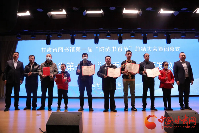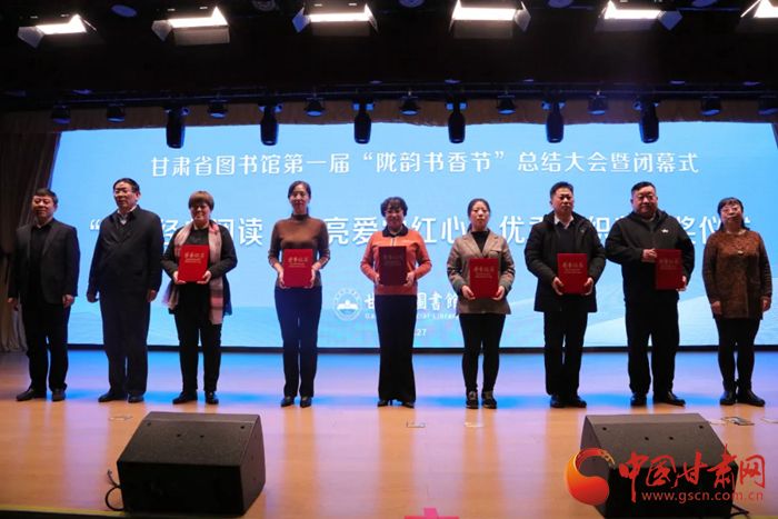 中國甘肅網(wǎng)12月28日訊(本網(wǎng)記者 張?zhí)m琴 通訊員 吳鵬)12月27日,歷時8個月的甘肅省圖書館第一屆隴韻書香節(jié)圓滿落幕。閉幕儀式上播放了第一屆“隴韻書香節(jié)”活動總結(jié)短片和書香家庭宣傳短片,公布了“隴韻書香節(jié)”形象標(biāo)識(LOGO)方案,并為“甘肅省第一屆書香家庭”獲得者、“紅色經(jīng)典閱讀  點(diǎn)亮愛黨紅心”活動獲獎?wù)哳C獎。