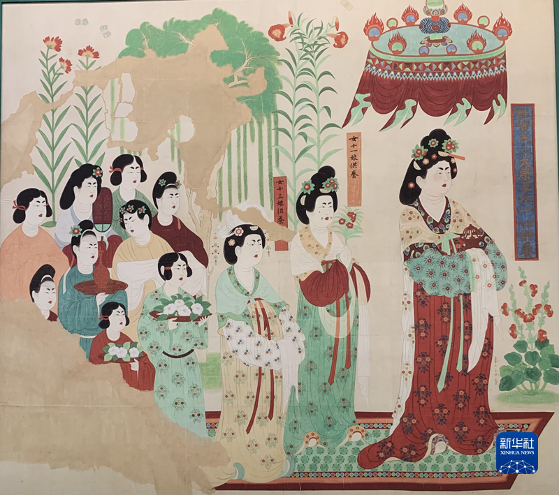 《都督夫人禮佛圖》復(fù)制品(段文杰臨摹)。新華社記者 張玉潔 攝