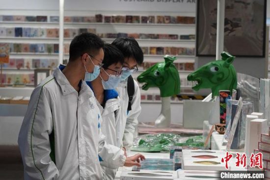 1月14日,甘肅省博物館文創(chuàng)中心的銅奔馬頭套吸引參觀者駐足觀看。連日來(lái),甘肅省博物館文創(chuàng)中心推出的以銅奔馬為主題的文創(chuàng)產(chǎn)品,如“神馬來(lái)了”銅奔馬頭套,“綠馬”出行口罩等產(chǎn)品備受歡迎。