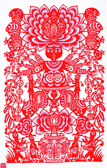 剪紙藝術(shù)題材多體現(xiàn)在祈福求安、避邪娛樂、孝道祭祀、喜事慶賀等等,例如五福娃娃、連年有余、大紅喜字、剪紙風(fēng)格也多樣化、多元化,剪紙作品一般初期主要是以對(duì)稱圖案為主,中后期主要發(fā)展成人物頭像、大型復(fù)雜圖案畫及反映和宣傳時(shí)代氣息的、人們喜聞樂見的多元素圖案,也將古代藝術(shù)和現(xiàn)代特征結(jié)合起來給人渲染一種藝術(shù)美、社會(huì)美、時(shí)代美的視覺欣賞、其作品妙趣橫生,秀美遒勁,雄渾大氣,喜聞樂見,愛不釋手,廣泛流傳在城鄉(xiāng)之間。當(dāng)下,剪紙藝術(shù)作為非物質(zhì)文化遺產(chǎn),深受社會(huì)各個(gè)階層的人士喜愛,把剪紙精神發(fā)揚(yáng)光大。傳承非遺,是我們共同的使命。