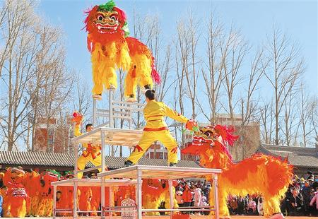 民樂縣高臺舞獅展雄風。新甘肅·甘肅日報通訊員 王 將