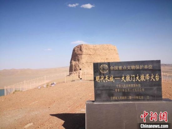 圖為位于甘肅酒泉市金塔縣境內(nèi)的全國重點文物保護單位——大墩門大墩明長城烽燧。(資料圖) 馮志軍 攝