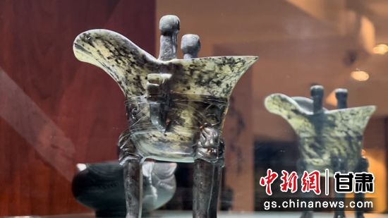 圖為酒泉夜光杯廠里陳列的夜光杯茶藝文化產品——精品懸環(huán)玉壺。王牧雨