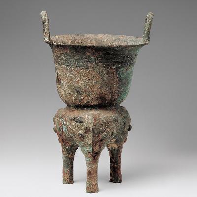 侈口,細腰三款足,腰設活箅,口沿飾獸紋,足飾牛面紋。腹內(nèi)壁鑄有“勻”銘文。