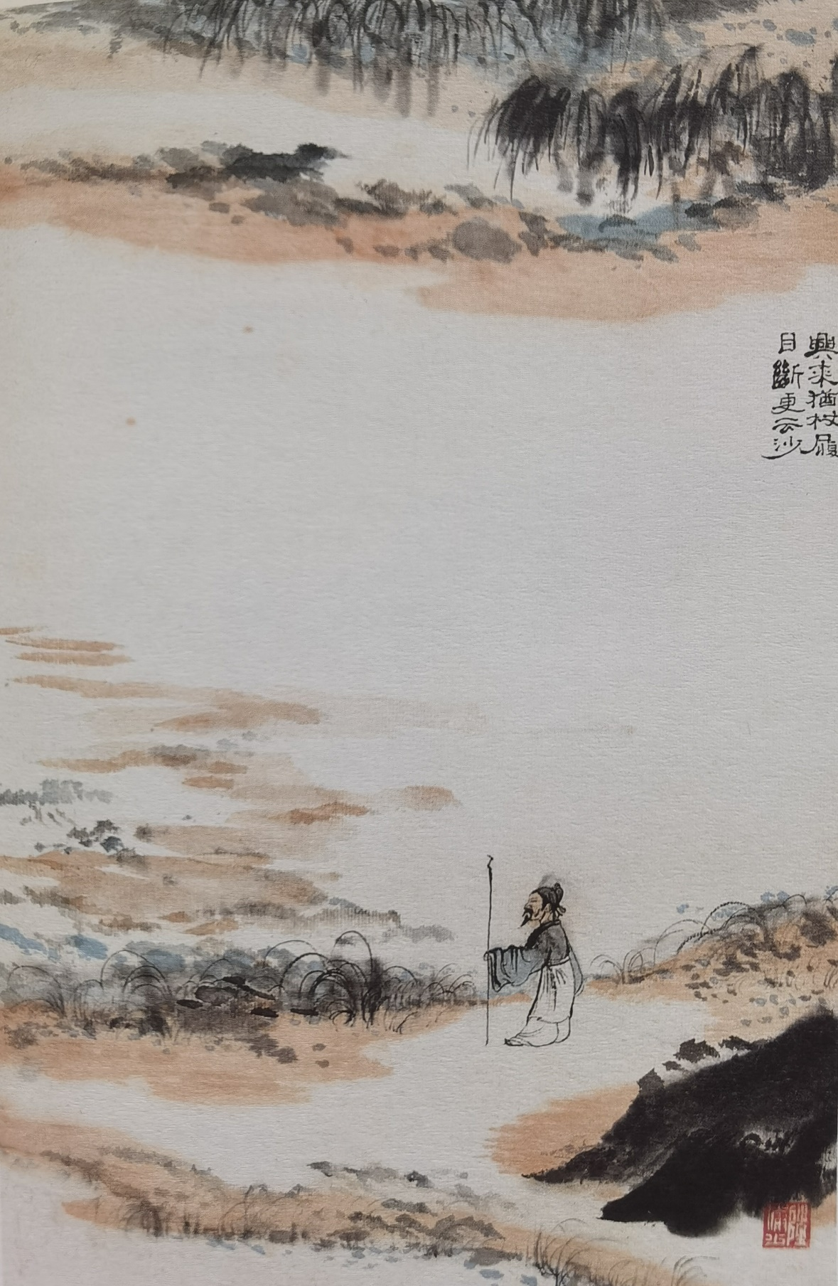 圖:陸儼少《杜甫詩意圖冊(cè)》之《漾舟千山內(nèi),日入泊枉渚》