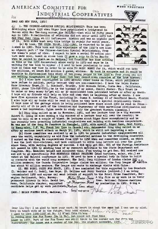 (海倫·斯諾的工合美國(guó)委員會(huì)信箋)