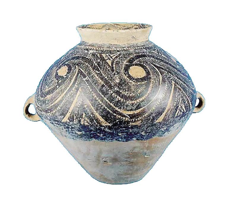 姓名:馬家窯文化半山類型漩渦紋雙耳彩陶罐 出生年代:距今約4650—4350年左右 住址:積石山縣博物館 體型:高34厘米,口徑15.7厘米,腹徑109.9厘米,底徑13厘米 自我描述: 我是國(guó)家二級(jí)文物。我們半山類型彩陶家族成員主要有大型貯藏器壺、甕、罐等。1988年積石山縣癿藏鄉(xiāng)吊地屲村一村民將我捐贈(zèng)給博物館。泥質(zhì)紅陶造就的我,撇口,束頸,溜肩,腹部飾對(duì)稱的雙耳,施黑彩,肩腹部有四方連續(xù)漩渦鋸齒紋,下飾一周水波紋。胎體光亮,紋飾細(xì)膩規(guī)整。