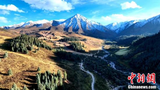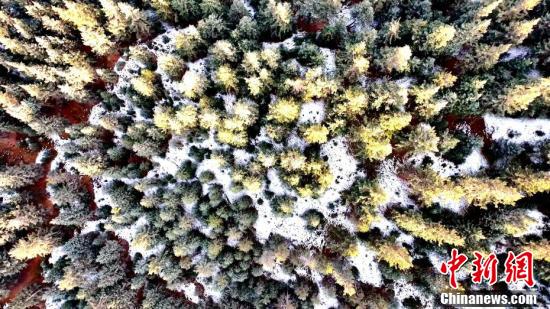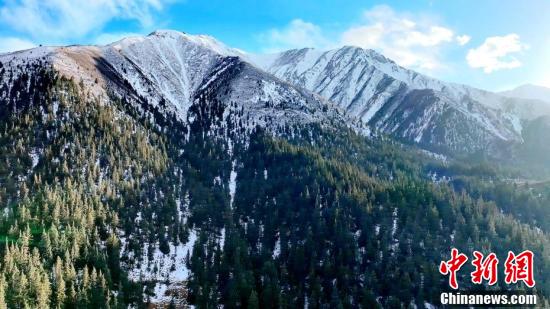 今年截至11月4日,中國東北地區(qū)大部、新疆、青海、西藏、內(nèi)蒙古、甘肅等地都已經(jīng)進(jìn)入氣象意義上的冬季。圖為薄雪覆蓋山巒和林區(qū)。