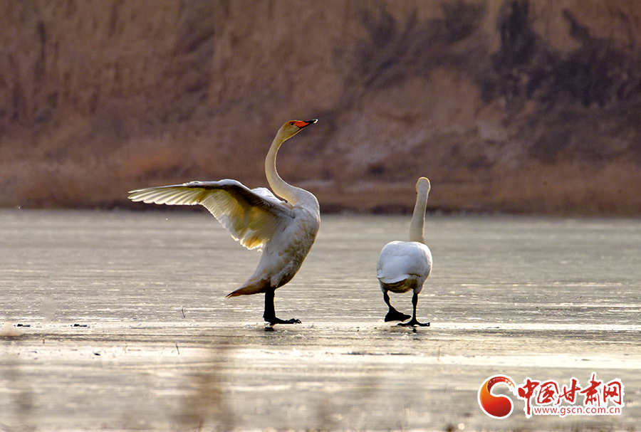 初冬,位于平?jīng)鍪徐o寧縣境內(nèi)的懸鏡湖迎來(lái)白天鵝在此組團(tuán)落腳,這是今年以來(lái)天鵝首次“光臨”懸鏡湖。