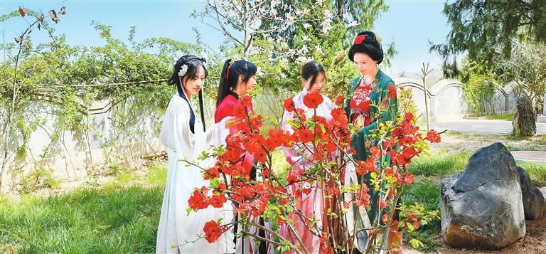 中國(guó)甘肅網(wǎng)4月10日訊 據(jù)蘭州晨報(bào)報(bào)道(奔流新聞·蘭州晨報(bào)記者王蘭芳)“百花錦繡,龍城花朝。”4月9日下午,由天水市玉泉觀大景區(qū)服務(wù)中心、天水市博物館、甘肅公航旅天水名城公司主辦的天水市第二屆漢服“花朝節(jié)”盛大啟幕。來自天水市的數(shù)百名漢服愛好者身著各色漢服,或云鬢斜簪輕拂團(tuán)扇,或衣帶飄飄款款而來。那一刻,煙火人間與國(guó)潮美學(xué)完美融合,“同袍”們盛裝打扮,共同歡慶“花朝節(jié)”。
