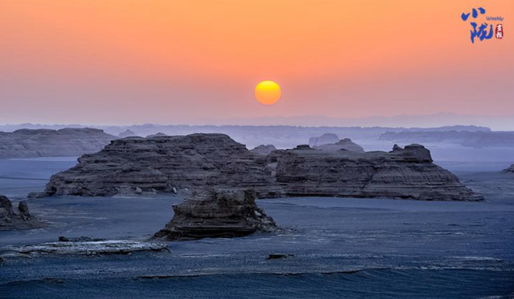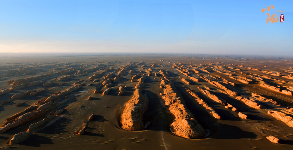 一隊隊整齊排列的雅丹像是整裝待發(fā)、氣勢磅礴的遠航艦隊,在浩瀚無垠的漠海上劈波斬浪,蔚為壯觀,實屬罕見。