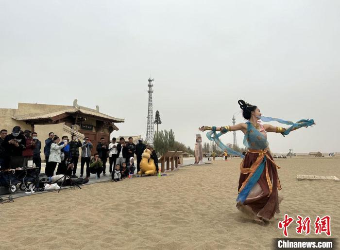 近年來,敦煌市委網(wǎng)信辦以“壁畫變裝秀”“飛天舞蹈短視頻”“漫說敦煌歷史”等形式,弘揚敦煌文化。6月以來,內(nèi)地很多敦煌舞愛好者涌向敦煌,穿上以飛天服飾為代表的各種古裝,在絲綢之路旅游網(wǎng)紅“打卡地”鳴沙山月牙泉、玉門關、陽關等景區(qū)拍照、直播,各種不同的古裝服飾也為“大漠孤煙直”的絲路古道增添了無限色彩。