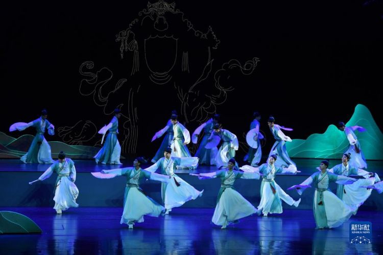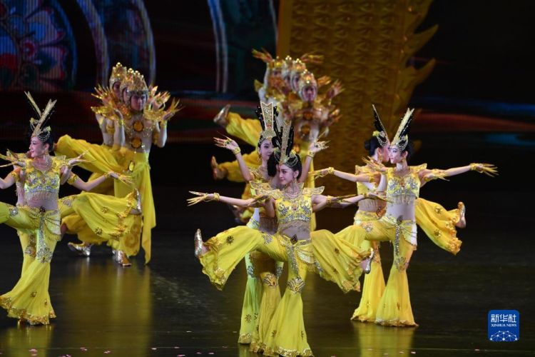 中國殘疾人藝術團演員在敦煌大劇院表演大型情景音畫劇《千手千眼》(6月18日攝)。