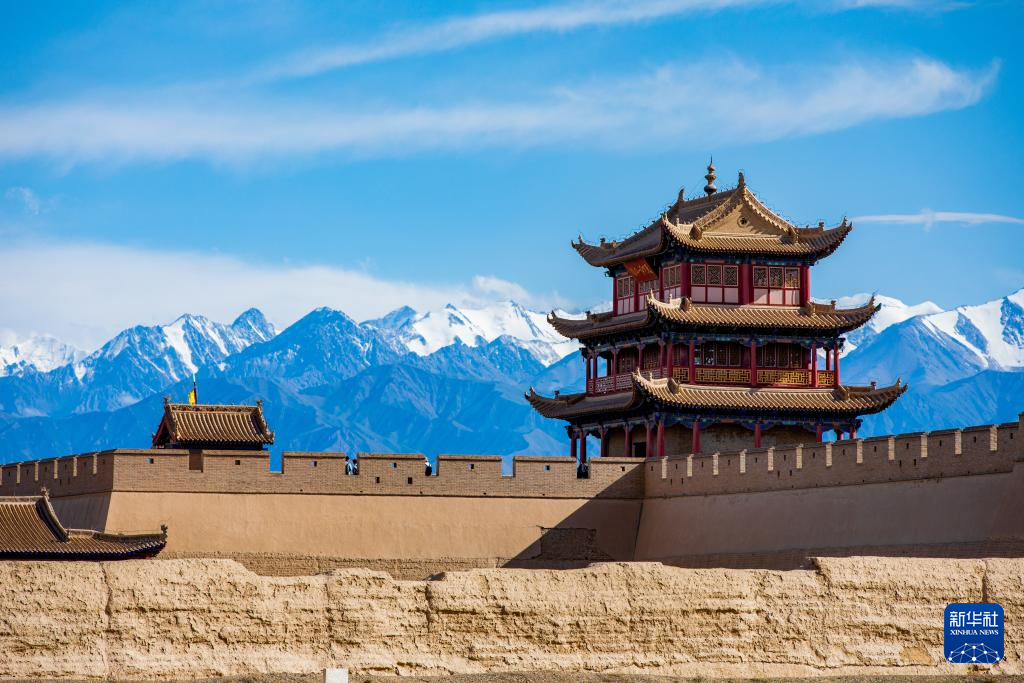 當(dāng)日,位于甘肅河西走廊的嘉峪關(guān)市在一場疾風(fēng)驟雨后,天空放晴,遠(yuǎn)處祁連雪山與嘉峪關(guān)關(guān)城交相輝映,構(gòu)成一幅壯美畫卷。