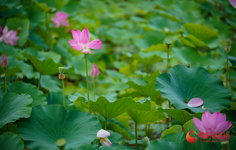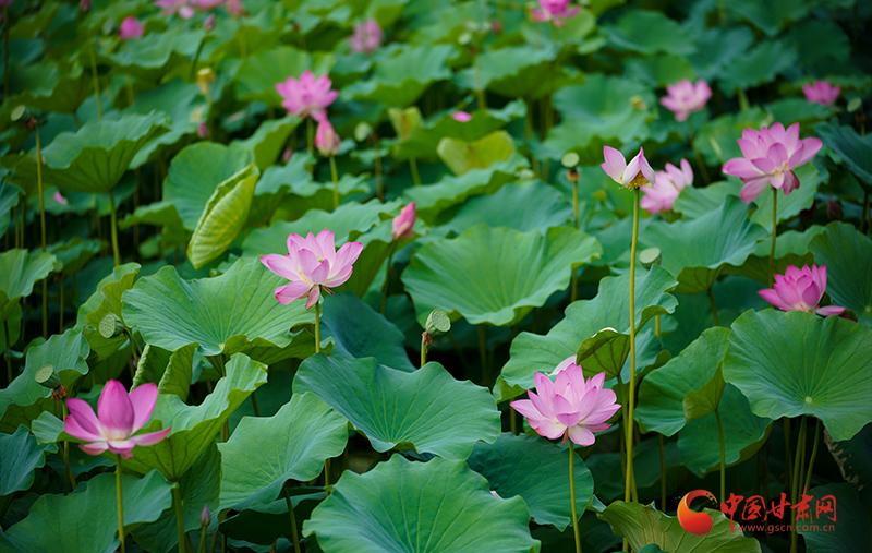 盛夏時(shí)節(jié),甘肅成縣裴公湖的荷花爭(zhēng)相盛開,吸引大批游客前來(lái)觀賞,拍照打卡。