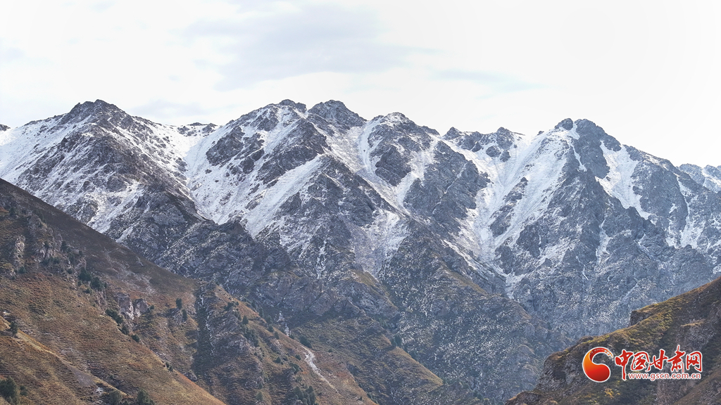 9月25日,位于甘肅省河西走廊的張掖市山丹馬場秋日初雪,遠(yuǎn)處的祁連山上積雪與松柏交相輝映,巖羊在雪地里悠閑覓食,宛如一幅和諧的生態(tài)畫卷。