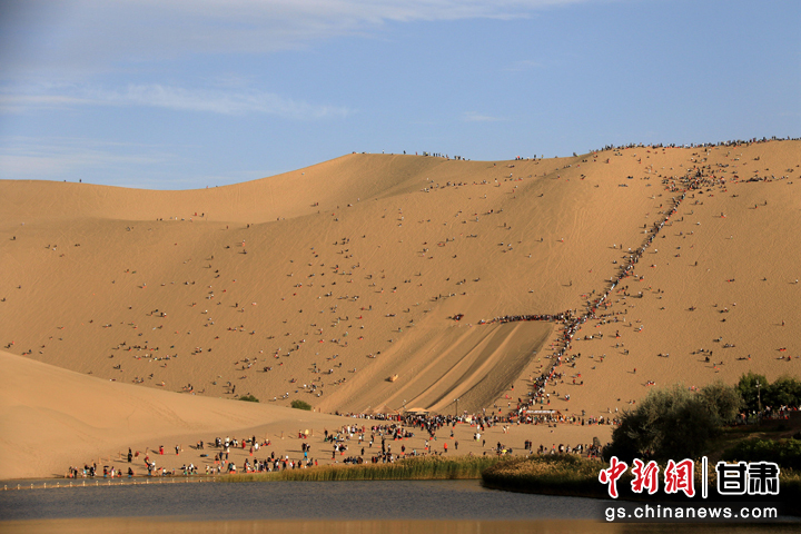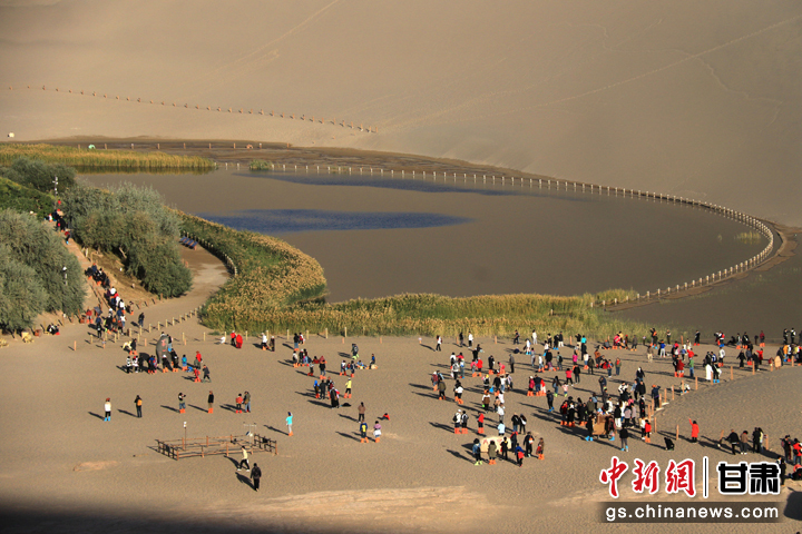 今年以來(lái),甘肅省敦煌市旅游市場(chǎng)持續(xù)火熱。當(dāng)?shù)刂包c(diǎn)鳴沙山月牙泉在今年中秋國(guó)慶假期期間,累計(jì)接待游客首次突破300萬(wàn)人次,比2019年同期增長(zhǎng)35.5%,創(chuàng)歷史新高。(張曉亮 習(xí)剛)