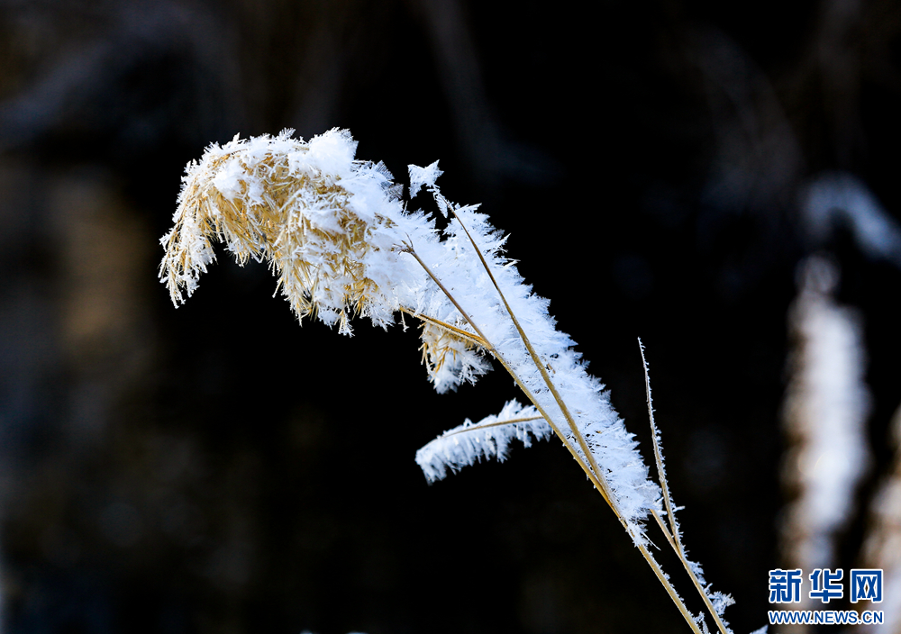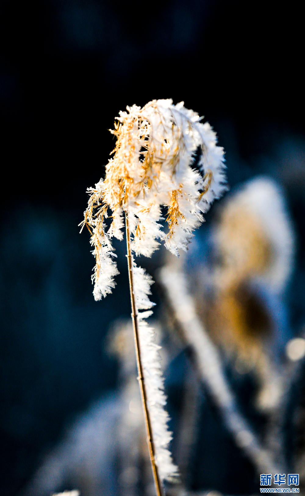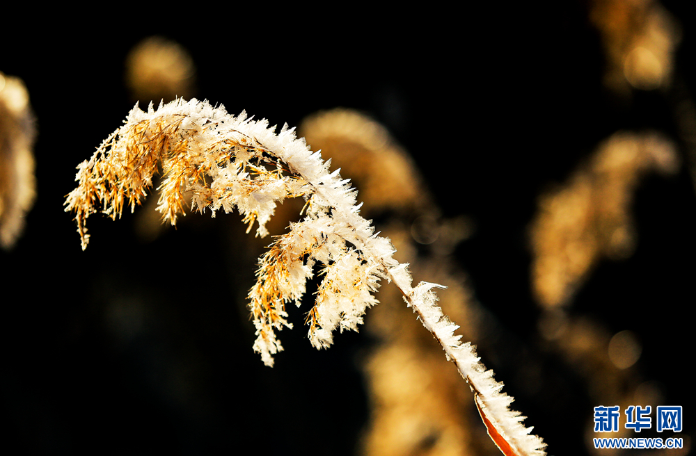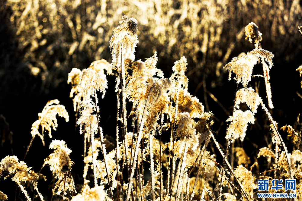 冬日里,甘肅省張掖國(guó)家濕地公園蘆葦叢中的蘆花掛滿冰花,晶瑩剔透,美不勝收。新華網(wǎng)發(fā)(陳禮 攝)