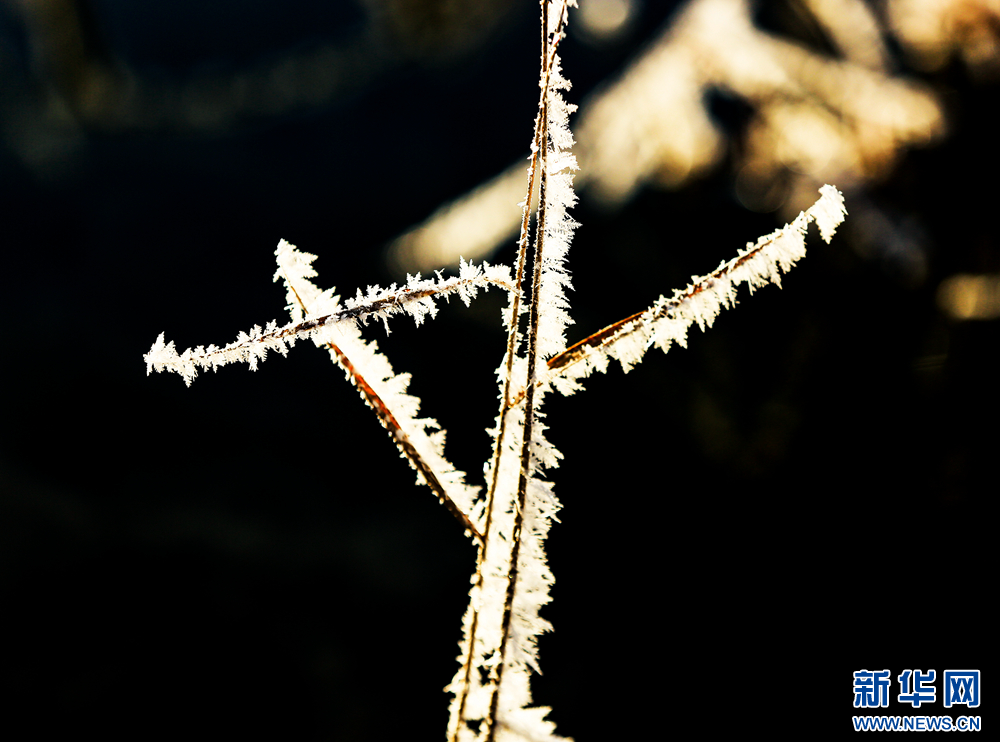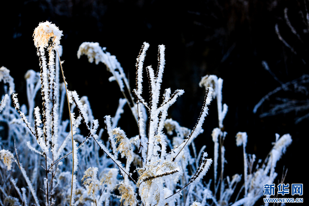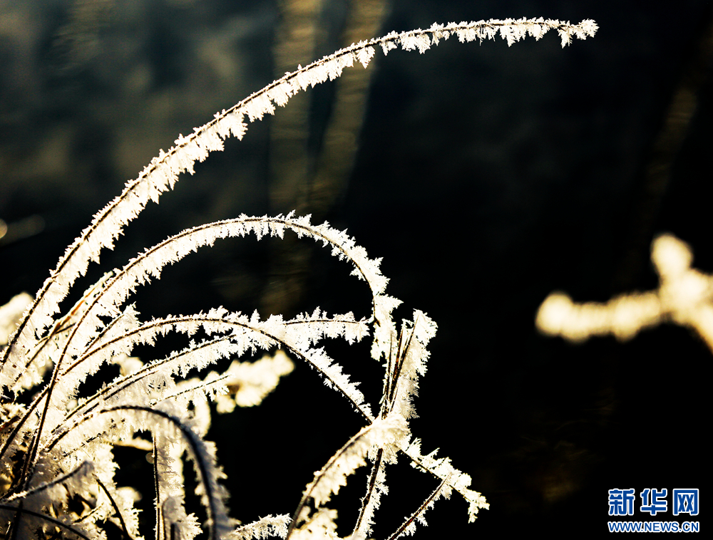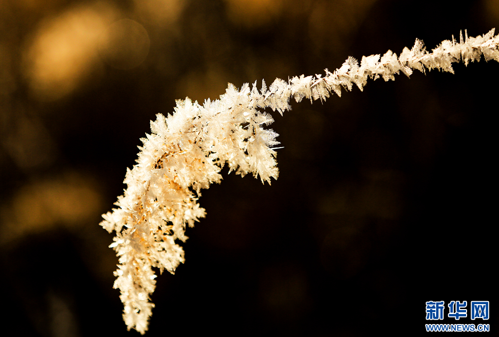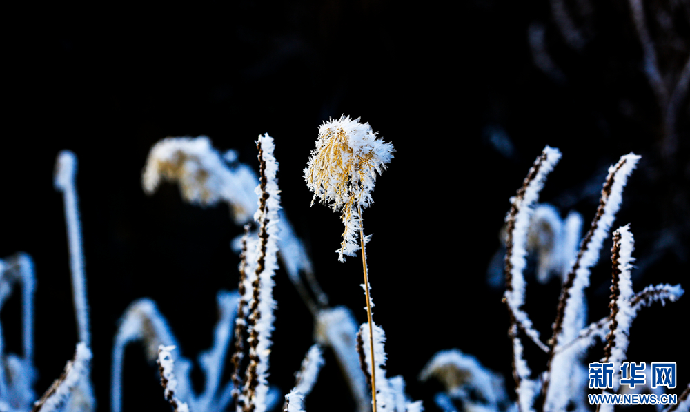 冬日里,甘肅省張掖國(guó)家濕地公園蘆葦叢中的蘆花掛滿冰花,晶瑩剔透,美不勝收。新華網(wǎng)發(fā)(陳禮 攝)