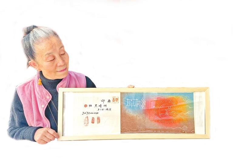 阮琦向記者介紹了具體的拓印方法:首先要把一張噴濕的宣紙敷在陶板上,用拓印的工具一點(diǎn)一點(diǎn)拓印,待紙張干燥后繼續(xù)噴水……使水彩顏料均勻地拓在宣紙上,然后把紙揭下來(lái),一張拓片畫(huà)就完成了。