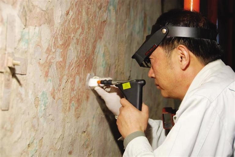 樊再軒研究員在修復(fù)壁畫(huà)