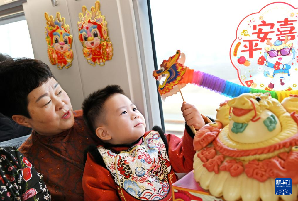 當(dāng)日,中國(guó)鐵路濟(jì)南局集團(tuán)有限公司青島客運(yùn)段在齊魯環(huán)游線G6955次列車(chē)上開(kāi)展“年俗非遺進(jìn)高鐵”活動(dòng),讓旅客在旅途中感受傳統(tǒng)文化的魅力,營(yíng)造濃郁的節(jié)日氛圍。