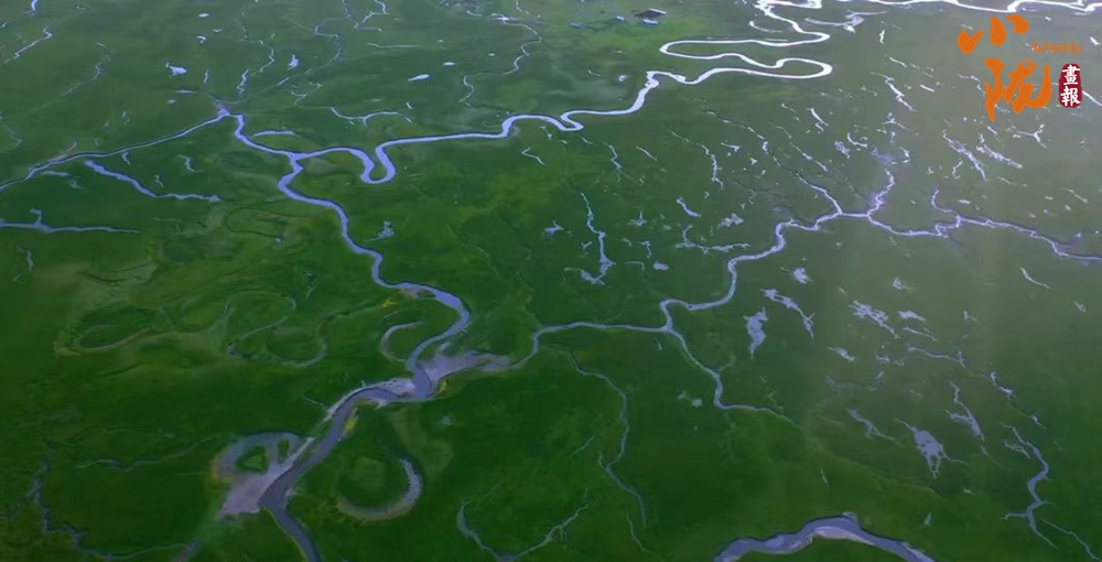 條條溪流蜿蜒縱橫,濕地沼澤星羅棋布,有牛羊信步,俊鷹翱翔,藍天白云綠地,寬廣遼闊,一望無際。