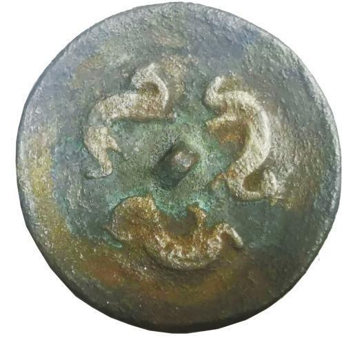 1981年出土于金川三角城遺址西崗墓群,為國(guó)家一級(jí)文物。直徑5厘米,鏡面上模鑄三條軀體蜿蜒的對(duì)稱龍紋,三龍首尾相接,環(huán)繞鏡鈕一周,展現(xiàn)了春秋戰(zhàn)國(guó)時(shí)期金昌先民杰出的青銅鑄造工藝以及非凡想象力,現(xiàn)為金昌市博物館館標(biāo)。該文物是沙井文化青銅器的杰出代表,洋溢著濃郁的草原青銅文化特色,是中西方文化交流的典型物證。