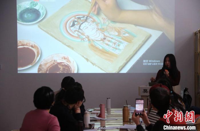2023年2月,在敦煌研究院莫高學(xué)堂,研學(xué)導(dǎo)師給學(xué)員講授敦煌壁畫(huà)臨摹技法。張曉亮 攝