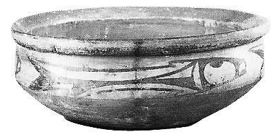 遺址中出土的帶有彩繪符號(hào)的陶片。