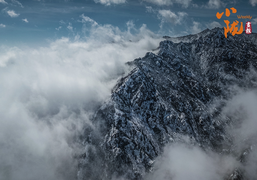 山巒草木都被純凈的白雪覆蓋,遠(yuǎn)處的群山蒼蒼茫茫、異峰林立、斷崖高聳,與天相接,天地間輕霧彌漫,渾然一體,讓人心馳神往。