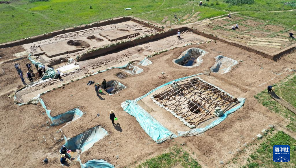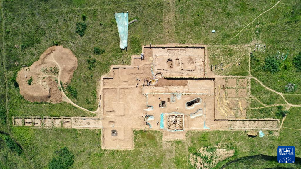 這是2022年6月10日拍攝的甘肅省隴南市禮縣四角坪遺址考古發(fā)掘現(xiàn)場(chǎng)(無(wú)人機(jī)照片)。新華社記者 陳斌 攝