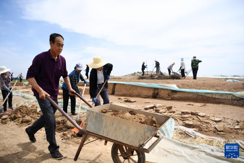 工作人員在甘肅省隴南市禮縣四角坪遺址考古發(fā)掘現(xiàn)場(chǎng)工作(2022年6月10日攝)。新華社記者 陳斌 攝