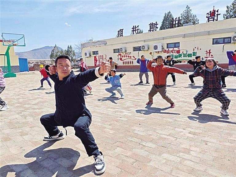 在晏家洼小學,記者看到,山頂的陽光與風里,17個孩子整整齊齊地站在操場上,在陳偉禮的帶領下,有模有樣地練起來。弓步,出拳,眼神凌厲,撤腿,下蹲,身體下壓,此刻的孩子們像一只只努力展翅的雛鷹。