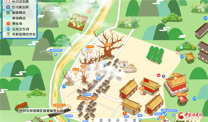 由于百年古梨園位于村落之間,占地面積大且道路蜿蜒曲折,許多外地游客在這里總會(huì)因?yàn)槁窙r不熟或者看不懂紙質(zhì)地圖而走很多冤枉路。針對(duì)游客的這一痛點(diǎn),中國移動(dòng)甘肅公司蘭州分公司依托云網(wǎng)融合和數(shù)字化服務(wù)優(yōu)勢,為什川梨園及周邊景區(qū)量身打造了5G+VR手繪地圖智慧導(dǎo)覽服務(wù),根據(jù)當(dāng)?shù)仫L(fēng)格特色定制手繪地圖,展示當(dāng)?shù)鼐包c(diǎn)及場所地標(biāo)名稱,并可結(jié)合語音講解充分展現(xiàn)歷史背景、文物故事、人物典故等景區(qū)相關(guān)信息,真正讓每一位游客感受到“一部手機(jī)游梨園”的便利。