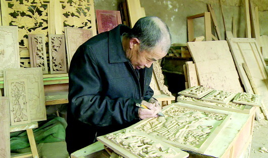 現(xiàn)已70多歲的劉正忠,是非物質(zhì)文化遺產(chǎn)武山木雕的省級(jí)傳承人。早在20多歲的時(shí)候,他就跟隨曾祖父學(xué)做明清古典家具,之后又拜師隴西名門莫家研習(xí)木雕技藝。多年的歷練,讓他的木雕技藝青出于藍(lán),既有莫氏雕刻的粗獷豪放,也有東陽(yáng)雕刻的細(xì)膩精練,更具武山木雕的典雅逸致。