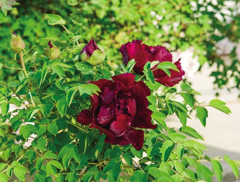 就像櫻花一樣,紫斑牡丹濃淡不一,淡粉、深粉、紫紅、月白……一朵朵,千朵萬朵,似身著旗袍的女子,在蝶舞蜂鬧中,裊裊婷婷,醉了游客,也醉了等候她的有心人,醉了季節(jié)。所有的美好皆在切切地等候中妖媚心思,那姿態(tài)、那境界,又如水墨畫里款款而來的女子,對(duì)鏡帖花黃的婉約,晚睡后的慵懶,臨窗而讀的安逸,皆在綠葉間閃現(xiàn)柔媚。