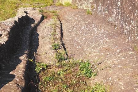 慶陽石道坡古道遺存的車轍印。祿永峰 攝