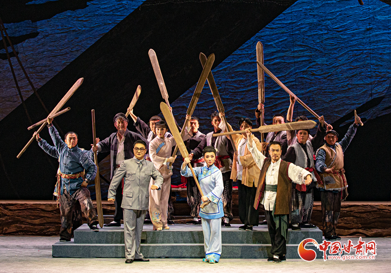隴劇《大河?xùn)|流》于19日晚在甘肅黃河劇院成功首演。該劇以20世紀(jì)30年代末抗戰(zhàn)為背景,運(yùn)用具有地方特色的隴劇形式,生動地描繪了大西北黃河邊的一群筏客子在國家危難之際,如何放下個人恩怨,團(tuán)結(jié)起來支援抗戰(zhàn),組成水上大型運(yùn)輸隊(duì),將大量物資安全送達(dá)抗戰(zhàn)前線,創(chuàng)造了“羊皮筏子賽軍艦”的傳奇故事。(甘肅省隴劇院供圖)