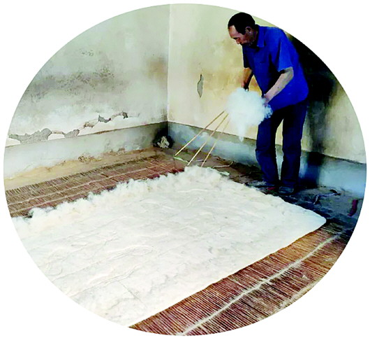 “早年毛氈多銷(xiāo)往天水,現(xiàn)今卻是外地客商要得較多,有位臨洮的客商,20多年了,每年到村上收購(gòu),一次能收四五百?gòu)垼粋€(gè)多月就賣(mài)完了。”張建偉說(shuō),由于毛氈的成本和運(yùn)費(fèi)越來(lái)越高,利潤(rùn)卻越來(lái)越少,所以現(xiàn)在搟氈的人也不多了。若想繼續(xù)下去,今后還得改進(jìn)工藝,爭(zhēng)取搟出更加干凈衛(wèi)生的毛氈,著力向南方和國(guó)外宣傳,或許銷(xiāo)量還能提升。