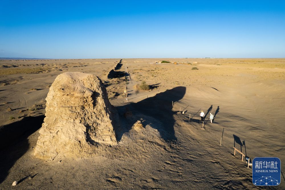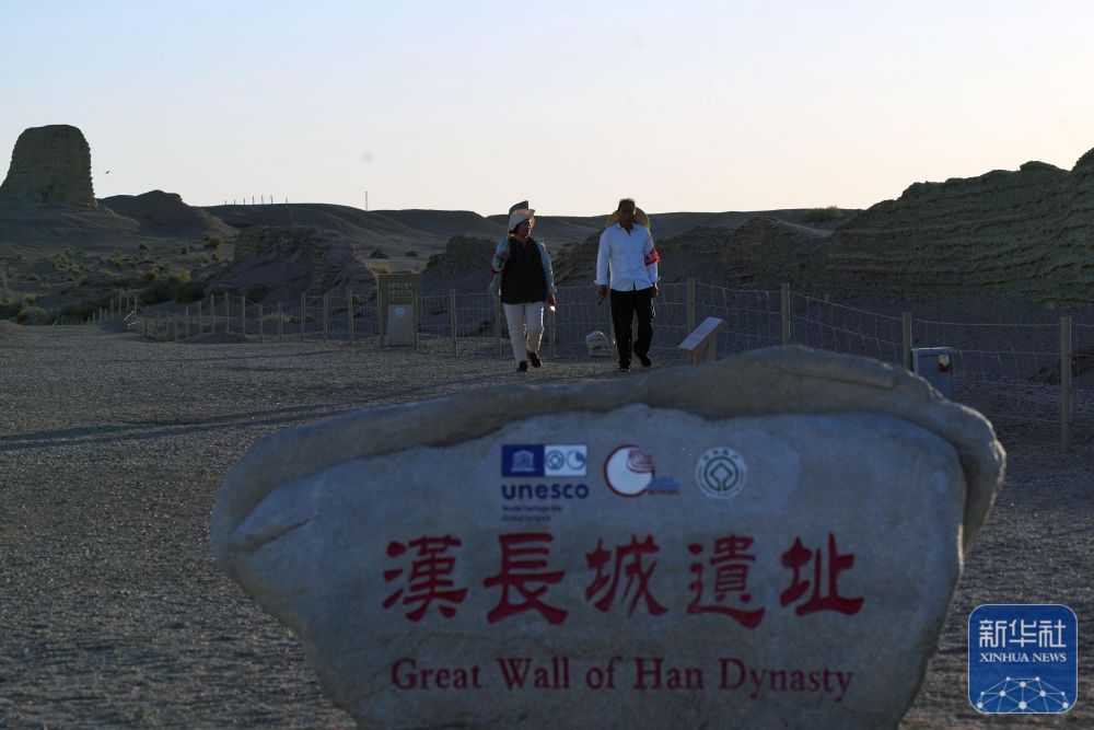 玉門關(guān)外,大漠戈壁,漢長(zhǎng)城遺址巍然屹立,訴說著歷史上的邊塞風(fēng)云和絲路滄桑。