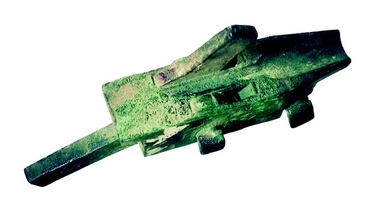出土的青銅弩機(jī)共三件,制作精巧,外觀平整光潔。大件長14.5厘米,寬12.8厘米,重量為1031.9克。中件長14.9厘米,寬7.4厘米,重量為540克。小件長10厘米,寬4厘米,重量為11克。這三件弩機(jī)除了小件稍有點(diǎn)殘缺外,其余兩件基本完整。三件弩機(jī)造型沉穩(wěn),小巧玲瓏,且機(jī)廓都由青銅鑄造,這在已出土的弓箭類文物中比較罕見。經(jīng)過專家鑒定,這是三國時(shí)期魏蜀征戰(zhàn)天水時(shí)的遺留文物。