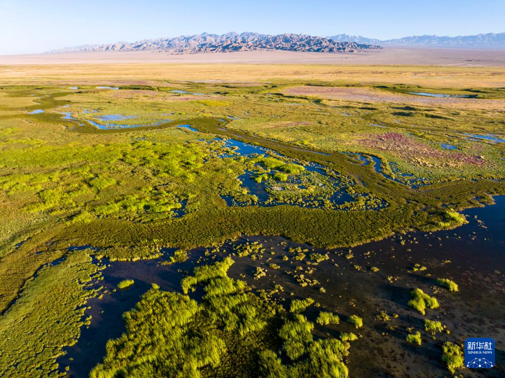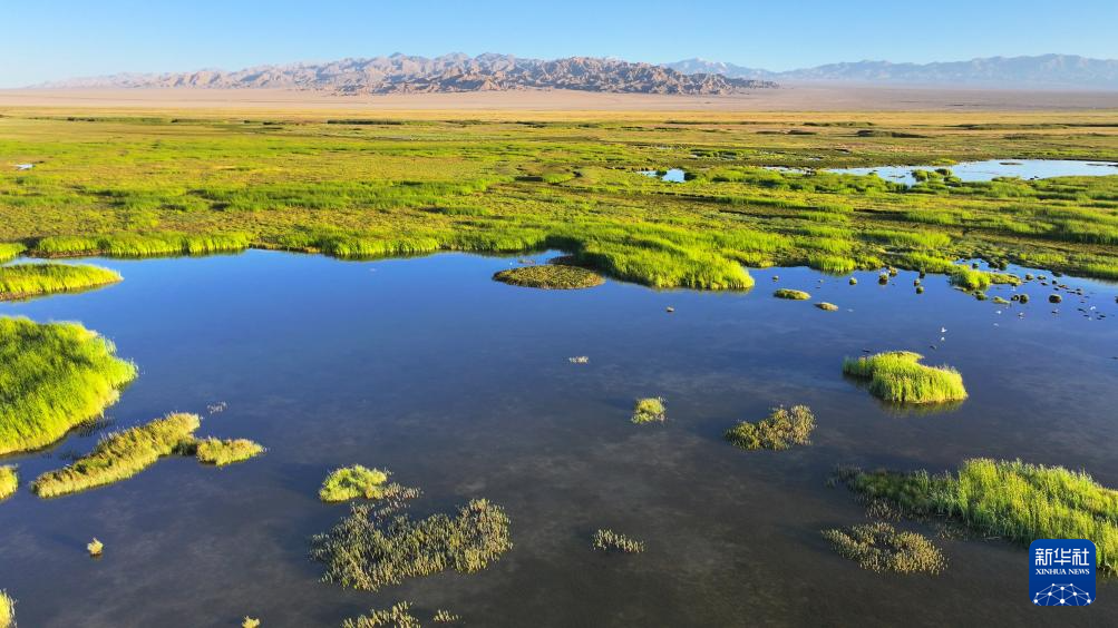7月31日拍攝的大蘇干湖濕地景色(無(wú)人機(jī)照片)。新華社發(fā)(高宏善 攝)